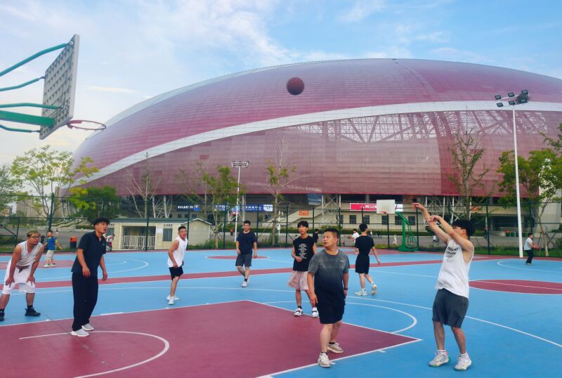 酷暑炎炎,擋不住市民的健身熱情。暑期以來(lái),每天早晚在我市公園、廣場(chǎng)、體育場(chǎng)館,處處可見熱鬧的運(yùn)動(dòng)場(chǎng)景,人們通過各種體育項(xiàng)目的鍛煉,享受揮汗如雨的身心快樂。圖為7月8日傍晚,籃球愛好者在淮南奧體中心打球。