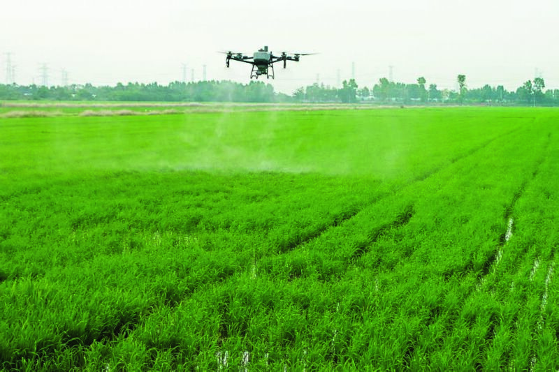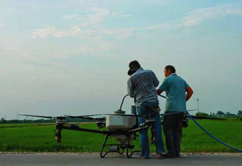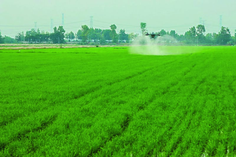 為了根除稻田雜草,淮南農(nóng)場(chǎng)于日前采用多臺(tái)無人機(jī)飛防作業(yè),對(duì)稻田全面進(jìn)行化學(xué)除草。