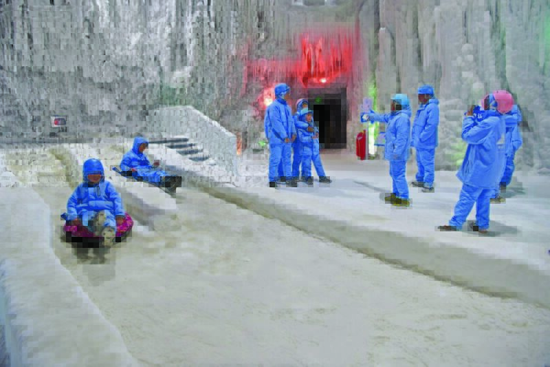 毛集實驗區(qū)的焦崗湖“冰簾洞天”項目總投資約1億元,造雪覆冰面積4萬平方米,是華東地區(qū)最大的夢幻冰城,也是全省唯一的地下冰簾溶洞景觀,游客一年四季都可實現(xiàn)“冰雪自由”,隨時隨地來冰城“探奇”。
