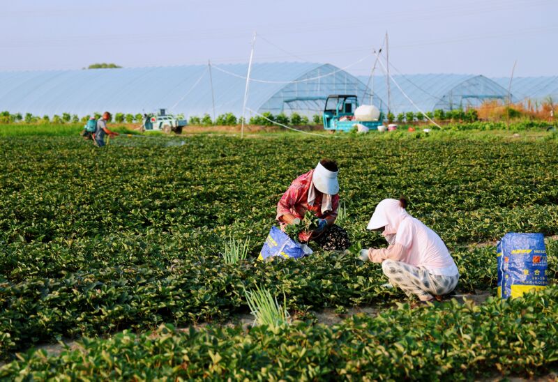 時(shí)值三伏季節(jié),在大通區(qū)孔店鄉(xiāng)的千畝草莓基地,每天早晚都有眾多農(nóng)民在地頭噴藥施肥、打理果苗,希望用辛勤汗水換來(lái)好收成,這些特色優(yōu)質(zhì)草莓將在明年元旦、春節(jié)上市。圖為7月20日該鄉(xiāng)柿元村農(nóng)民在田間勞作。