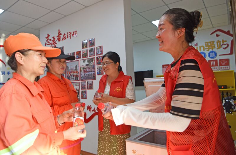 日前,團(tuán)市委、市委社會(huì)工作部、市青年志愿者協(xié)會(huì)共同啟動(dòng)“清涼一夏 愛心冰柜”公益活動(dòng),全市66個(gè)“愛心冰柜”供給點(diǎn)為環(huán)衛(wèi)工人、建筑工人、外賣員、快遞員等群體免費(fèi)提供礦泉水,關(guān)心關(guān)愛戶外勞動(dòng)者。圖為八公山區(qū)新莊孜街道團(tuán)結(jié)社區(qū)工會(huì)驛站,環(huán)衛(wèi)工人從“愛心冰柜”中免費(fèi)領(lǐng)取礦泉水,消暑納涼。