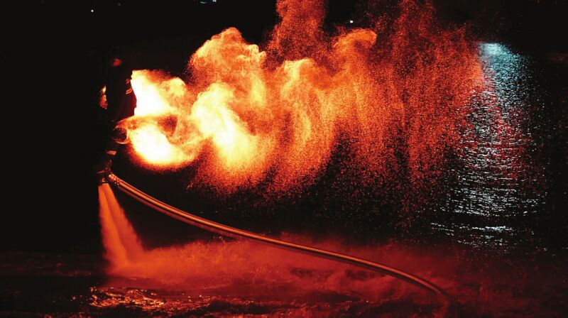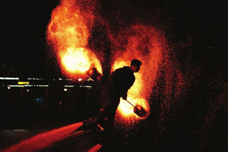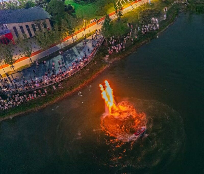 夏夜現(xiàn)水火奇觀“火龍飛舞”映照半湖星焰