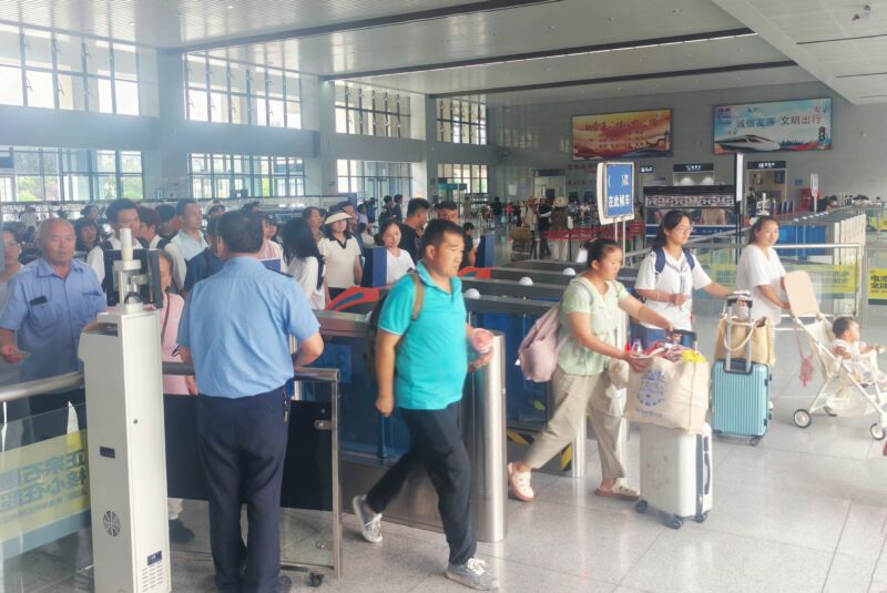 暑期以來,淮南西站所轄各客運(yùn)站客流量持續(xù)高位。面對繁忙時段,各車站每日增加安檢及志愿者人員,在進(jìn)出站、購票、檢票、候車等環(huán)節(jié)為旅客提供周到服務(wù),確保運(yùn)輸安全有序。圖為7月27日,淮南站出行旅客人流涌動。