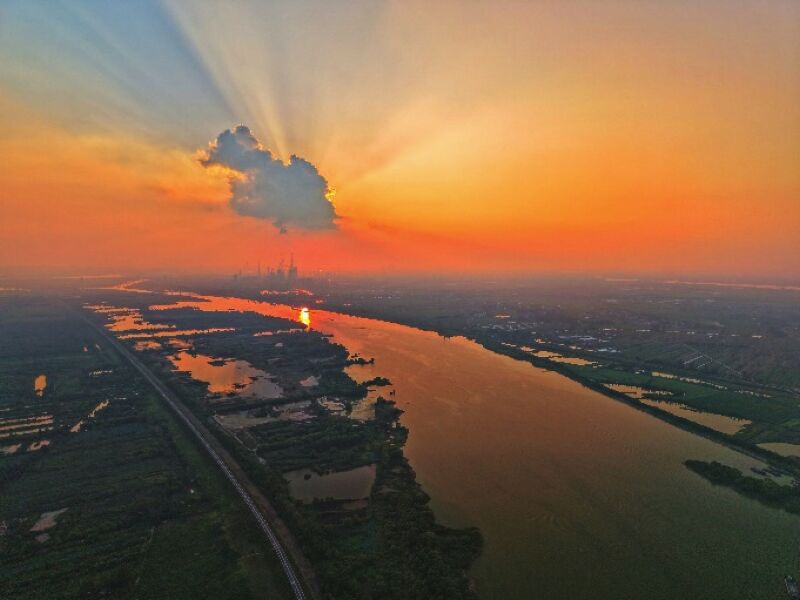 丁達(dá)爾光束繪就淮河“半江紅”