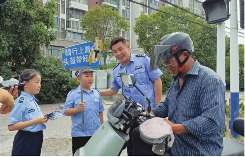 孩子們?cè)诿窬闹笇?dǎo)下,認(rèn)真學(xué)習(xí)了交通安全知識(shí)和指揮手勢(shì),親身體驗(yàn)了“小交警”的角色。隨后,他們化身“小小安全宣傳員”,用稚嫩而真誠(chéng)的聲音向過往行人傳遞安全提醒:“騎電動(dòng)車要戴好頭盔!”“電動(dòng)車不能逆行!”市民們被孩子們的認(rèn)真與可愛打動(dòng),紛紛點(diǎn)頭答應(yīng)。