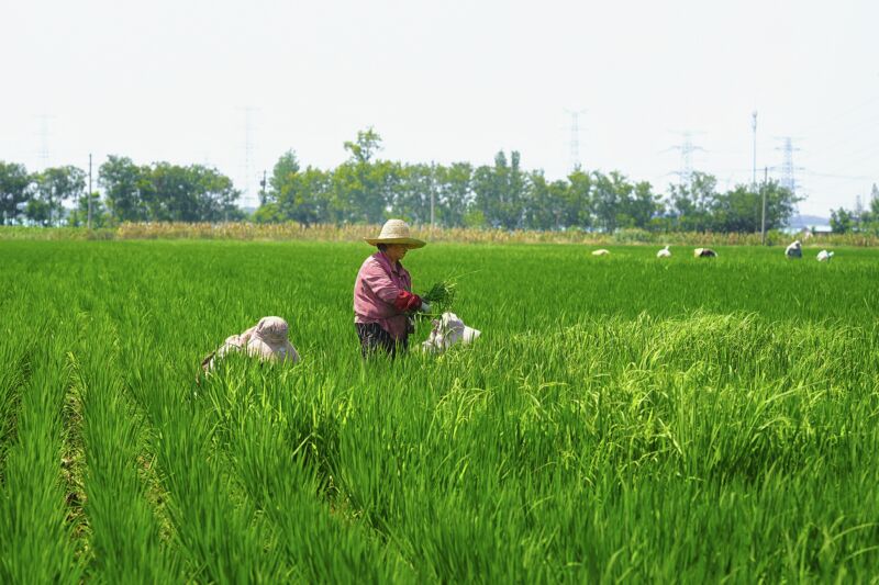 當(dāng)前正值水稻生長旺季,安徽農(nóng)墾淮南農(nóng)場持續(xù)聘請人工除草隊(duì)對良種水稻進(jìn)行除草作業(yè),消除稗草等有害雜草,有效避免了藥劑使用,保障水稻品質(zhì),促進(jìn)生態(tài)環(huán)保。