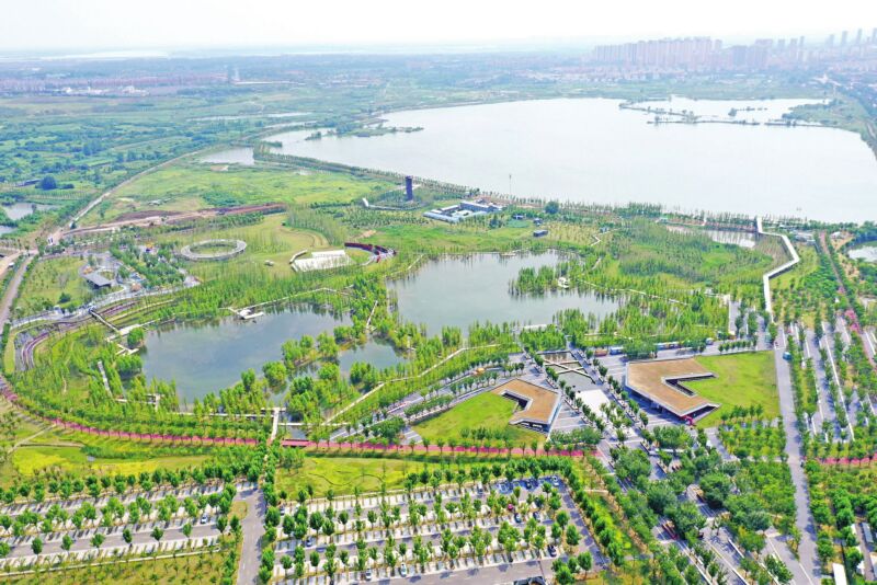 圖為:生態(tài)修復治理后的采煤沉陷區(qū),建設春申湖公園,滿足市民休閑需求。
