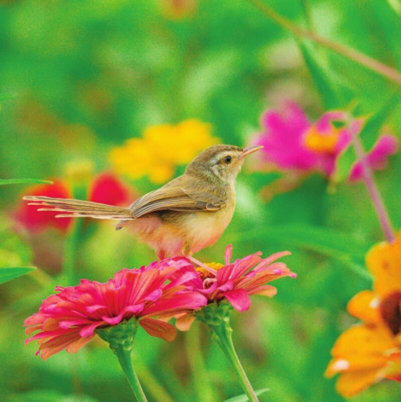 淮南的處暑“花代”——百日菊是菊科百日菊屬一年生草本植物,其花朵色彩絢爛、花型碩大,呈多層疊結(jié)構(gòu),從花芯向外次第展開,形似圓球狀或倒卵圓形,單瓣精巧可愛,重瓣更顯華麗。其花朵色彩繽紛,紅色如霞、粉色似夢、黃色耀眼、白色純凈。花期從初夏持續(xù)至深秋,以花期綿延長達(dá)百日而得名。百日菊是外來品種,喜溫暖光照,耐干旱瘠薄,淮南全域都適宜百日菊的生長,常被用于妝點(diǎn)花壇花境。處暑時(shí)節(jié),淮河兩岸、群山峰巒處處可見成片的百日菊花海;市區(qū)綠化帶、道路旁、庭院內(nèi)以及空閑隙地更是隨處可見小片百日菊。人民公園四季花谷、E水系帶狀公園、瓦埠湖畔、焦崗湖濕地公園的百日菊花海都曾被媒體報(bào)道。為此,特將百日菊確定為處暑時(shí)節(jié)的淮南代表性花卉。