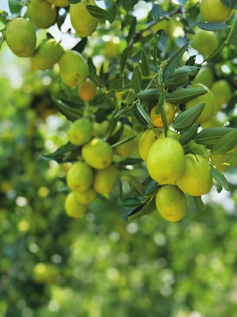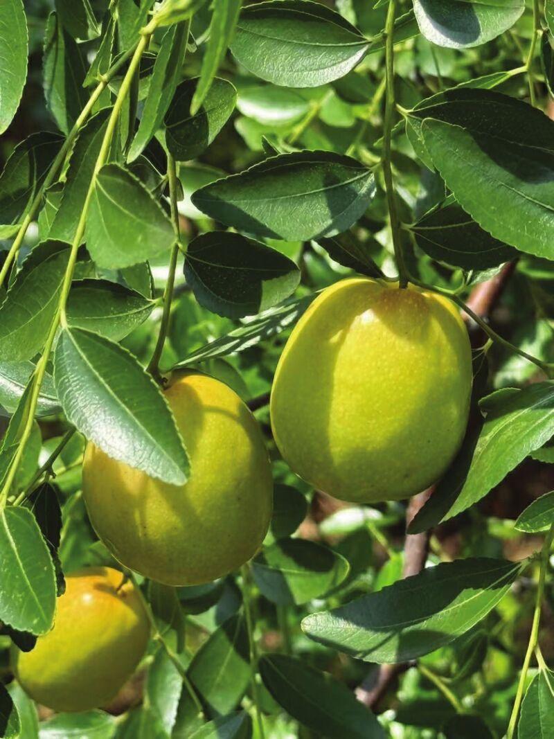 走進(jìn)林地,只見綠葉層疊、青翠欲滴,一顆顆飽滿瑩潤的青棗如翡翠般綴滿枝頭。它們或三兩簇?fù)恚颡?dú)自低垂,將枝條壓出豐碩的弧度。微風(fēng)拂過,林間仿佛已飄起若有似無的棗香,預(yù)告著一場甜蜜豐收的臨近。