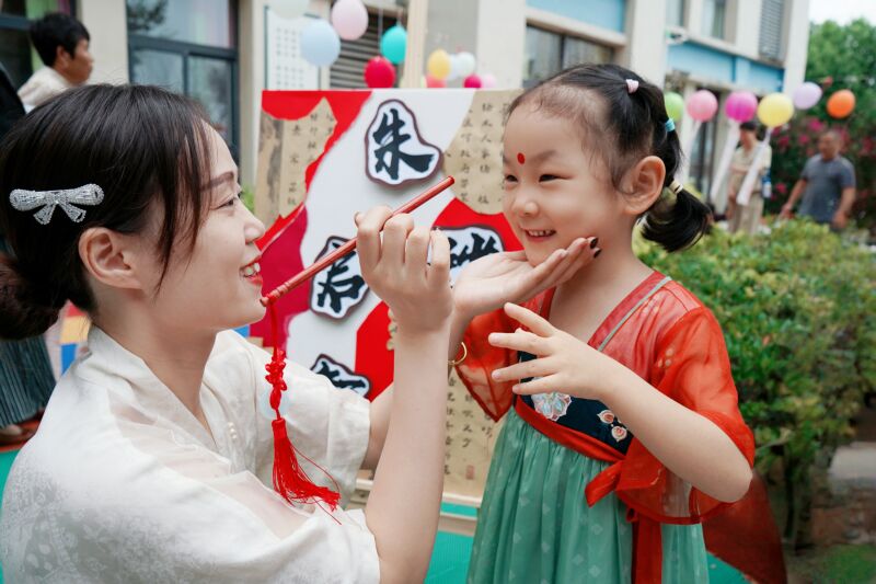 9月1日,市直幼教育集團(tuán)萬茂分園舉辦中華傳統(tǒng)文化游園會,400多名孩子身著傳統(tǒng)服飾,通過“朱砂啟智”“擊鼓明志”等傳統(tǒng)儀式,體驗(yàn)中華優(yōu)秀傳統(tǒng)文化的魅力。