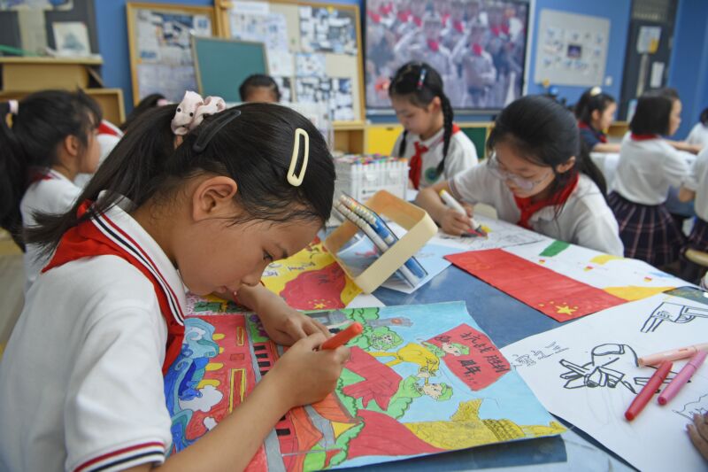 日前,淮師附小山南第十五小學(xué)學(xué)生通過繪畫形式再現(xiàn)紀念中國人民抗日戰(zhàn)爭暨世界反法西斯戰(zhàn)爭勝利80周年大會閱兵儀式場景。圖為同學(xué)們收看紀念大會直播后,通過畫筆描繪閱兵儀式壯觀場景。