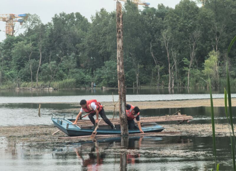這一情況迅速得到了相關(guān)部門的重視。在愛鳥協(xié)會的呼吁下,市漁政執(zhí)法大隊(duì)、淮南旅游發(fā)展有限公司等單位積極響應(yīng),迅速聯(lián)動。行動當(dāng)日,各部門工作人員通力合作,將十余條嶄新的竹排穩(wěn)穩(wěn)地固定在湖面適宜位置。這些竹排不僅為鴛鴦提供了穩(wěn)固、安全的棲息點(diǎn),也與湖光山色自然融合,成為一道新的人文生態(tài)景觀。