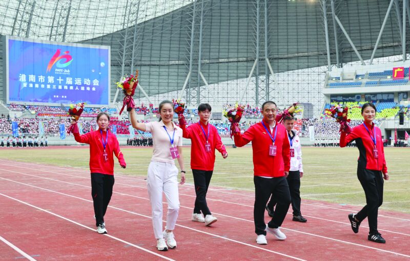 淮南籍優(yōu)秀運(yùn)動(dòng)員代表入場(chǎng)。