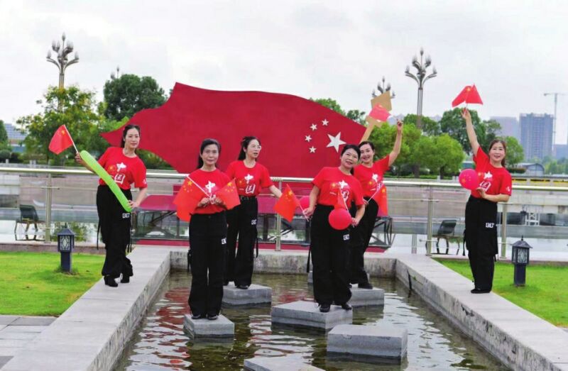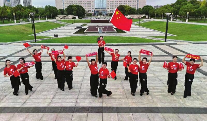 9月27日,淮南藝路同行舞蹈隊的姐妹們載歌載舞,通過與國旗同框的方式,表達(dá)對偉大祖國的美好祝福和真摯情感。