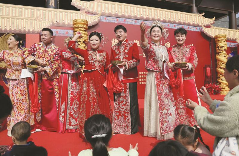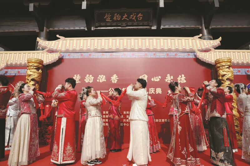 11月1日上午,在春申里文旅街區(qū),一場由市民政局、市婦聯(lián)主辦,市委宣傳部、市委社工部、市總工會、團(tuán)市委、淮南高新區(qū)協(xié)辦,市新聞傳媒中心承辦的集體婚禮浪漫舉行。12對新人身著傳統(tǒng)禮服,在親友與社會各界的見證下,共許白首之約,共同鐫刻同心永結(jié)的幸福時(shí)刻。整場儀式以楚文化的典雅氣韻為基調(diào),融匯淮河文明的包容精神,倡導(dǎo)“文明簡約、傳承文化、家國一體”的婚禮新風(fēng)。