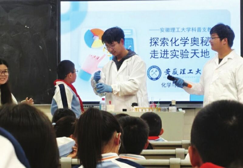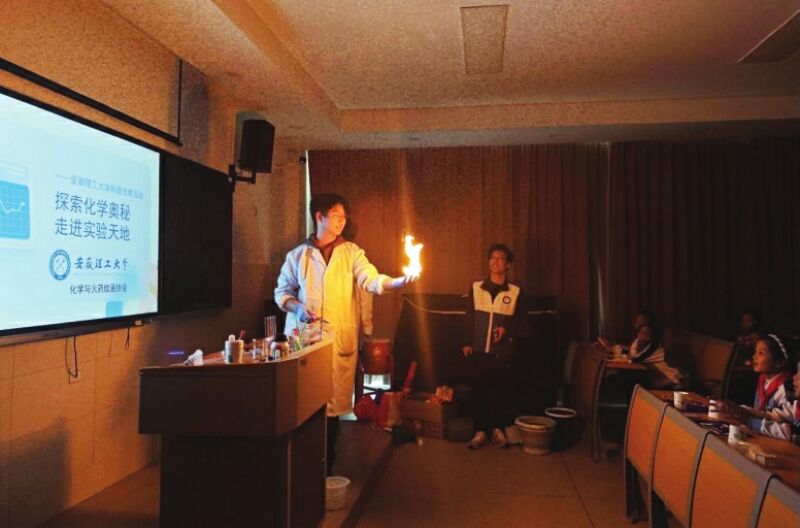 (記者 付莉榮 通訊員 王文濤 攝影報(bào)道)近日,安徽理工大學(xué)化工與爆破學(xué)院“星火”科普實(shí)踐團(tuán)聯(lián)合化學(xué)與火藥紋畫協(xié)會走進(jìn)安徽師范大學(xué)附屬淮南高新學(xué)校開展科普展演活動。