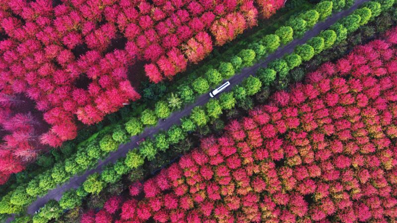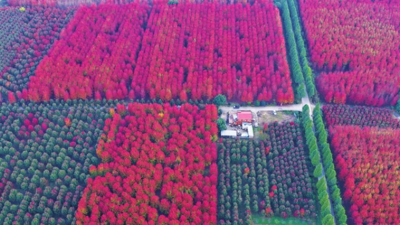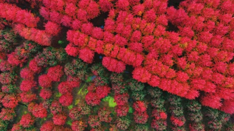 立冬后,毛集實驗區(qū)的紅楓林迎來最佳觀賞期,漫山遍野的緋紅如同熱烈的火焰,將天地渲染成一幅壯麗的油畫。游客們穿梭其間,或漫步拍照,或孩童嬉戲,盡情沉浸在這片初冬盛景之中,感受季節(jié)流轉(zhuǎn)的靜好。