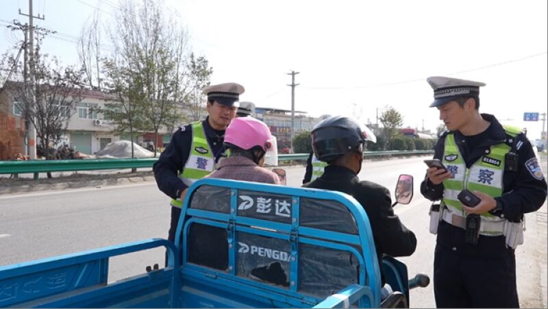 交警對(duì)三輪電動(dòng)車違法載人進(jìn)行宣教