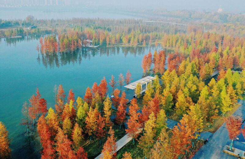 時值小雪節(jié)氣,我市西部采煤沉陷區(qū)修復(fù)治理項目——春申湖公園,千畝落羽杉、池杉彩林,在初冬晨光薄霧的烘托下,如詩如畫、如夢如幻。