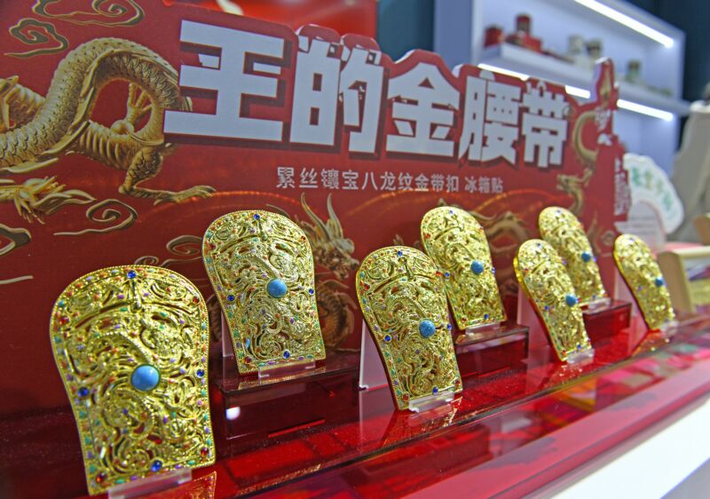 安徽谷語(yǔ)文化產(chǎn)業(yè)有限公司展出“王的金腰帶”冰箱貼成為展會(huì)中爆款產(chǎn)品。