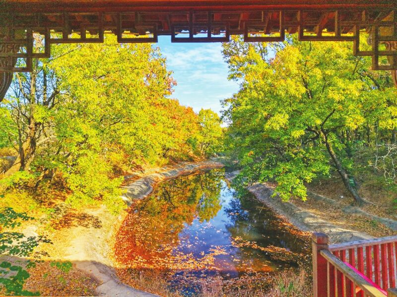初冬時(shí)節(jié),位于舜耕山南麓的慈母溪迎來一年中的最美時(shí)刻。清晨的陽光透過色彩斑斕的樹葉,讓靜謐的水面有了生機(jī),藍(lán)天白云映照其間,與溪面上金黃的落葉相映成趣,讓人忍不住放慢腳步,沉醉在慈母溪初冬獨(dú)有的清冽與詩意中。