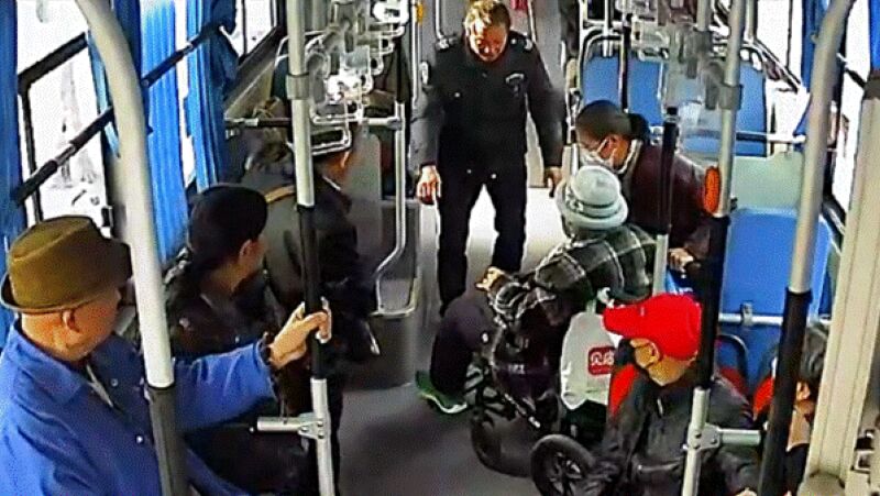 “你在這別動(dòng),我來(lái)把車(chē)搞好。”王師傅一邊安撫著大媽?zhuān)贿呴_(kāi)始操作公交車(chē)上的無(wú)障礙設(shè)施。期間,大媽連連道謝:“太謝謝師傅了!我這真是麻煩你了!