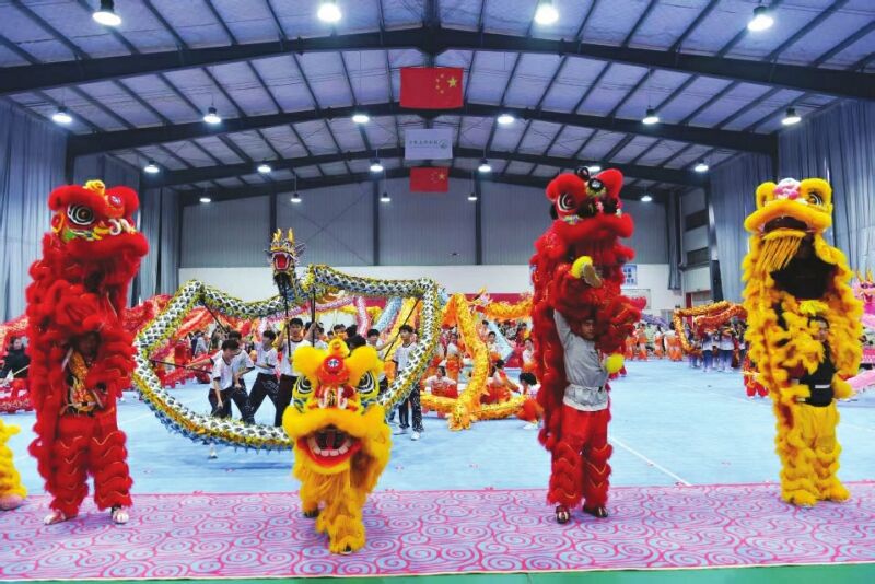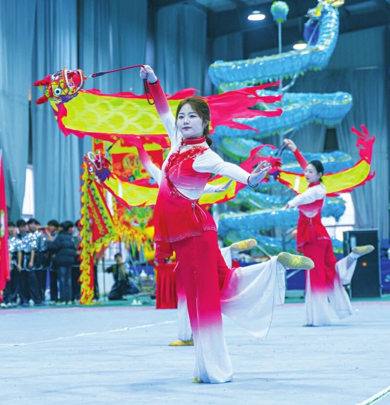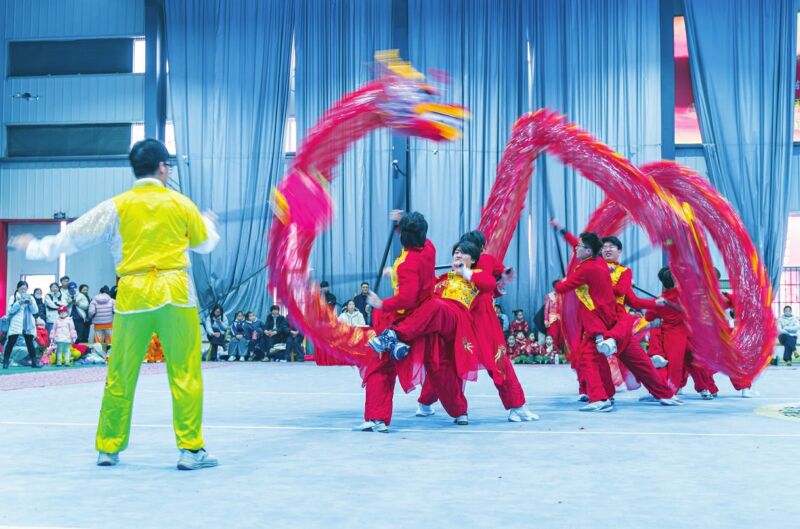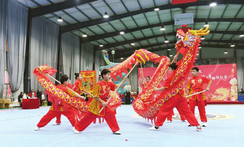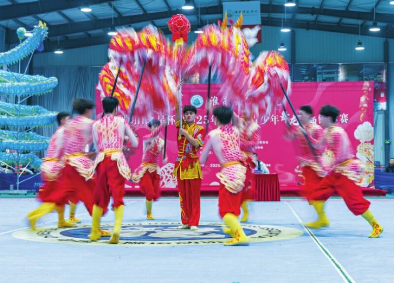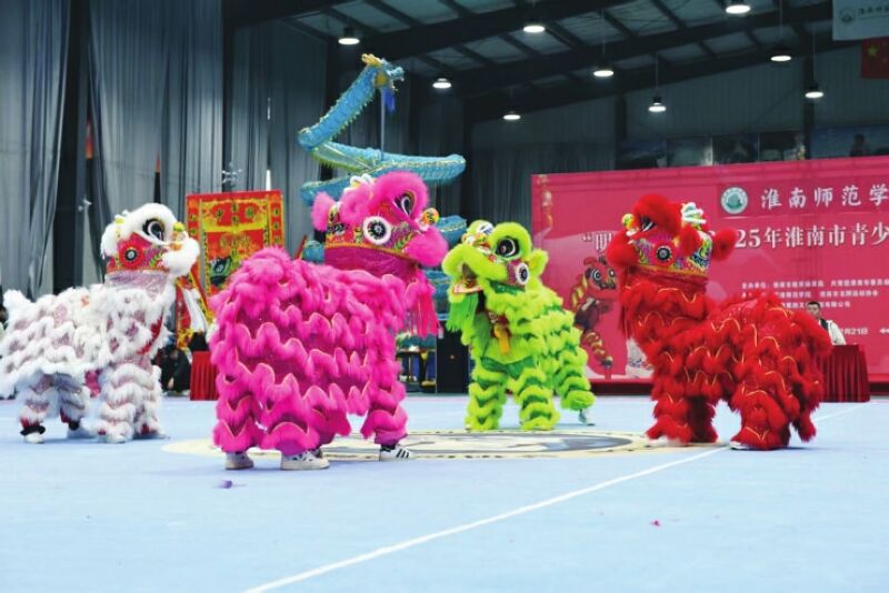 12月20日下午,淮南師范學(xué)院小球館內(nèi)熱鬧非凡,金黃的長龍盤旋升空,紅鬃醒獅踩點跳躍,一群又一群青少年手擎道具默契配合,一招一式剛勁靈動,贏得觀眾陣陣喝彩。