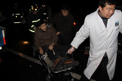 圖為趕到現(xiàn)場(chǎng)的醫(yī)護(hù)人員正在搶救傷員。