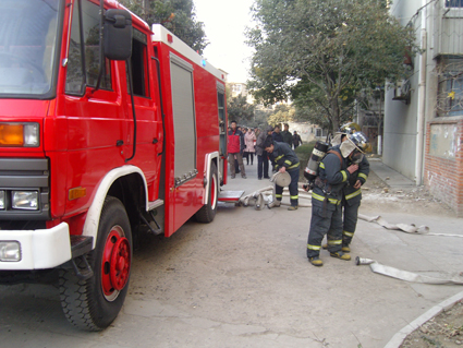 圖二:消防支隊(duì)泉山中隊(duì)到達(dá)現(xiàn)場(chǎng)準(zhǔn)備施救