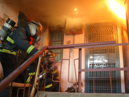 圖三:火舌從打開(kāi)的門撲向消防官兵