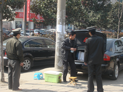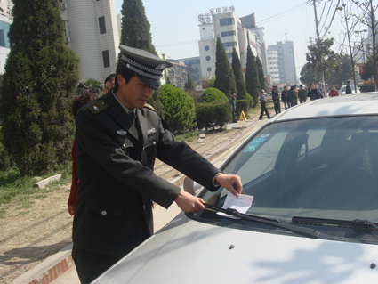 圖二:城管執(zhí)法人員正在下達違章停車的處罰。