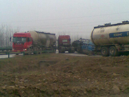 3月24日凌晨3時(shí)許,一輛水泥罐裝車(chē)路過(guò)合徐高速公路淮南連接線時(shí),由于拐彎不慎,翻倒在地,所幸無(wú)人員傷亡。