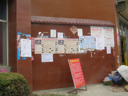 圖二:淮南市二十一中門前貼滿了各種小廣告。
