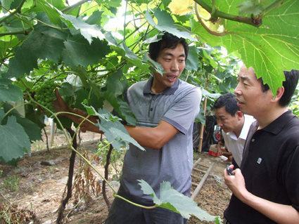 該園2007年落成后得到了農(nóng)行淮南潘集支行的大力支持,2009年剛開始種植10畝,通過農(nóng)戶聯(lián)保的方式貸款9萬元,年底還清貸款。隨著葡萄新苗的成長,又有20畝葡萄需要搭棚。7月28日,農(nóng)行淮南潘集支行員工高興地來到科技園,該園負(fù)責(zé)人笑容可掬地說:“我這葡萄是當(dāng)今最優(yōu)質(zhì)的品種,這10畝馬上就可以上市,賣了錢既能還貸又可以擴(kuò)大經(jīng)營規(guī)模!