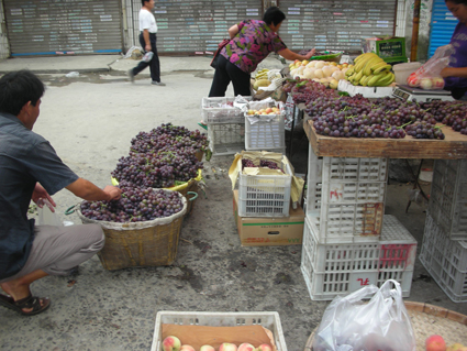 客人絡(luò)繹不絕,忙著搬運(yùn)葡萄的劉師傅不一會(huì)就熱得滿身是汗,但從他掛滿笑容和汗珠的臉上,可以看出他的喜悅之情。劉師傅說(shuō),他家的葡萄平均賣到5塊5一斤,在市場(chǎng)中價(jià)格比較適中,銷路很好。因?yàn)樗业钠咸哑け∪夂、核小多汁。?月初葡萄成熟之時(shí),劉師傅每天都能賣出三四百斤。粗粗算下來(lái),4畝葡萄這一季的收入能達(dá)到6至7萬(wàn)元。