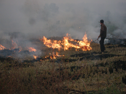 交談中,這位農(nóng)民告訴記者,他也知道焚燒的行為是不被允許的,但他焚燒也是很無(wú)奈的事,因?yàn)闆](méi)有什么好的辦法來(lái)處理稻茬和稻稈,“特別是這些稻茬,都連著泥土的,其他的方法很難處理。”“沒(méi)有辦法,到該種小麥的時(shí)候了,大家就都得盡快進(jìn)行焚燒!边@位農(nóng)民如是說(shuō)。