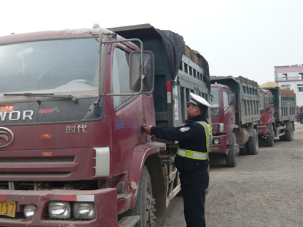 當(dāng)18輛貨車剛駛進(jìn)206國道上窯段時,自認(rèn)為已安全的貨車駕駛員就被守候在路邊的淮南市大通交警大隊上窯中隊4名交警捉個正著。4名交警依法對駕駛員進(jìn)行了嚴(yán)厲處罰。