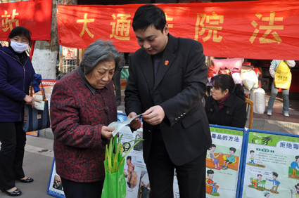 12月4日,大通區(qū)法院按照“弘揚(yáng)法治精神,促進(jìn)社會(huì)和諧”的宣傳主題,通過(guò)提供現(xiàn)場(chǎng)咨詢、發(fā)放宣傳資料、懸掛橫幅、制作展板等形式開(kāi)展法制宣傳活動(dòng),深入開(kāi)展法制宣傳教育,著力弘揚(yáng)法治精神,培養(yǎng)公民法律意識(shí),為轄區(qū)的科學(xué)發(fā)展、社會(huì)和諧營(yíng)造良好的法治環(huán)境。