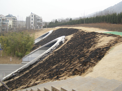 圖一為:洞山隧道北側(cè)的草坪大面積“燒傷”。