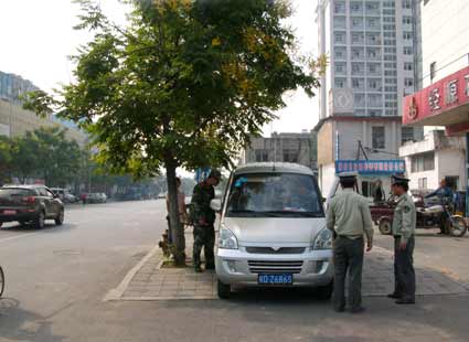 圖二:執(zhí)法人員對停車師傅進行勸導。
