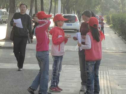圖五:小學生們上街宣傳。