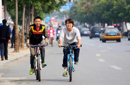 9月22日一大早,記者在淮河大道看到一群“單車族”。上前打聽得知,這些人是一家大型企業(yè)的白領,在“無車日”當天相約騎行上班。領頭的王友志告訴記者,“這不是‘無車日’嘛,約幾個朋友一起騎車,一路上有說有笑,一會兒就能到單位。過去自己開車,上下班別提多揪心了,堵車堵得心發(fā)慌。特別到了夏天,人也煩躁,排長龍的時候大家一起按喇叭。再說這油價一個勁漲,有時覺得燒得不是油,而是人民幣吶!”同行者表示,“無車日”只是一個倡議,真正要達到低碳、環(huán)保出行,還是要靠大家共同努力。