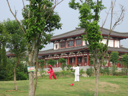 圖二:在風(fēng)景如畫的園區(qū)內(nèi)休閑健身,其樂融融。