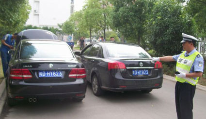5月30日上午,車(chē)牌號(hào)碼為皖DHY823的別克轎車(chē)車(chē)主張先生來(lái)到中都華府小區(qū)內(nèi),一輛停放在路邊的帕薩特轎車(chē)引起張先生的注意,仔細(xì)一看原來(lái)該車(chē)牌號(hào)碼竟然和張先生的車(chē)牌號(hào)碼一模一樣,這不就是套牌車(chē)嗎?張先生氣憤之下,立刻報(bào)警。接到報(bào)警的淮南市公安交通管理局田家庵二大隊(duì)機(jī)動(dòng)中隊(duì)民警趕到現(xiàn)場(chǎng),并想盡辦法與車(chē)主取得聯(lián)系,可車(chē)主崔某拒不承認(rèn)自己是車(chē)主,也不愿意到停車(chē)場(chǎng)打開(kāi)車(chē)門(mén)。民警在告知車(chē)主的情況下,利用技術(shù)手段打開(kāi)車(chē)門(mén),在套牌帕薩特轎車(chē)的后備箱內(nèi)找到該車(chē)的真正車(chē)牌,車(chē)牌號(hào)為皖DD7826。這時(shí)車(chē)主崔某才匆匆趕到停車(chē)場(chǎng),向民警承認(rèn)了違法事實(shí),并向別克牌轎車(chē)車(chē)主張先生道歉。