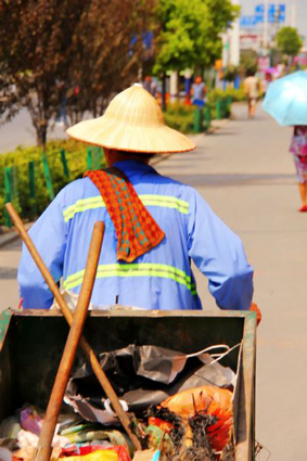 圖二:環(huán)衛(wèi)工人背后留下的是城市的潔凈和美麗