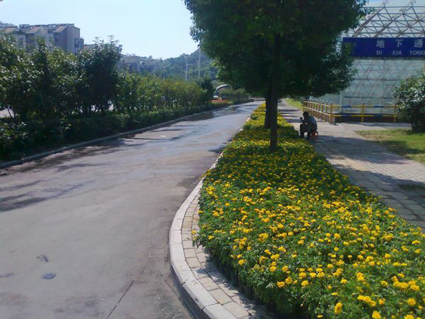 圖一:淮河大道洞山隧道附近人行道上的鮮花正艷