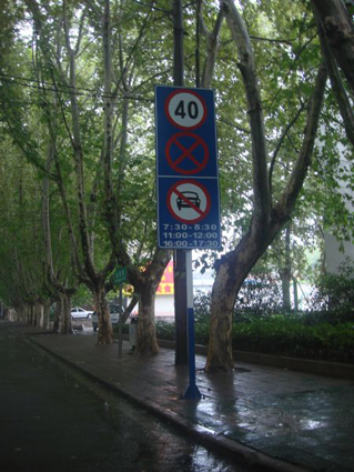 圖二:迎賓路邊樹立的交通標識牌標明了限時通行時段。
