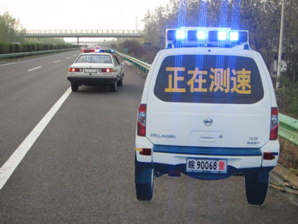 11月10日,司機(jī)張某駕私家車趕往淮南辦事,因?yàn)槭录,車駛(cè)氤赂咚俸蟊阋宦房耧j。行至淮南段某處時(shí),一輛停在路肩的警車突然進(jìn)入張某的視線,該警車不僅警燈閃爍,更有十分扎眼的四個(gè)大字“正在測(cè)速”,嚇的超速行駛的張某是一身冷汗,趕緊輕踩剎車。然而,等他開到警車跟前,張某才目瞪口呆地發(fā)現(xiàn),這哪里是什么“警車”,只是一塊會(huì)發(fā)光的警車樣鋼板。