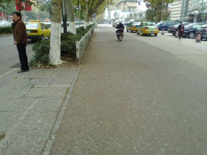 圖為洞山中路人行道路面留下的鳥(niǎo)糞痕跡。