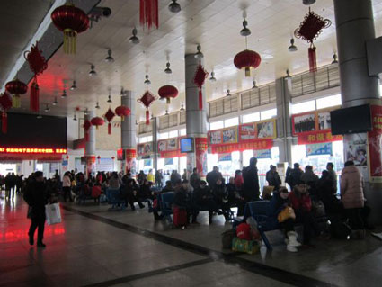 當日上午,記者來到淮南火車站,火車站候車大廳內一片繁忙景象,候車的旅客排成3條縱隊在檢票口前等候上車。大廳內的座位幾乎被坐滿,不少乘客選擇站立或席地而坐。據淮南火車站副站長王紅介紹,從正月初五(2月14日)開始,淮南火車站開始迎來節(jié)后旅客發(fā)送高峰,目前,客流主要以民工流和探親流為主,旅客出行有條不紊。